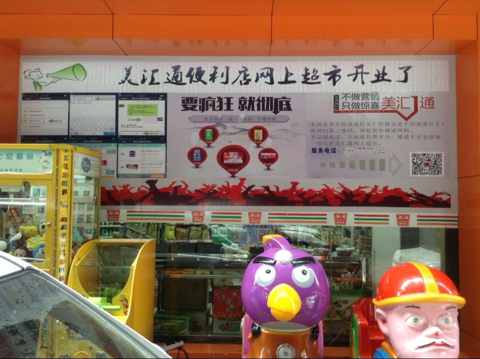 深圳老板阿杰是个80后,是好吃猫商户中的黑马,采用迅猛的推广策略,制作巨幅海报放在店里面以及小区显眼处,在深圳玉